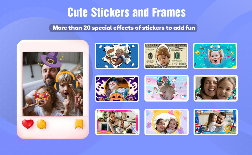- Safe & Reliable: Kids instant camera is printed with advanced thermal printing technology, the printing paper does not contain BPA, which is safer and more assured. High-quality soft plastic shockproof shell provides effective protection against drops. Safe and reliable toys are the most suitable gifts for children